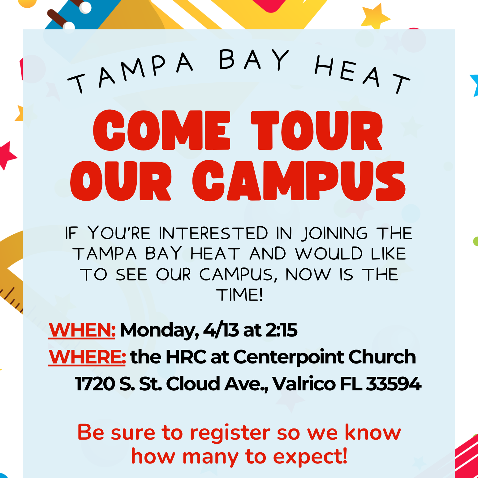 Tampa Bay HEAT’s Homeschool Resource Center (HRC) is proudly located at: