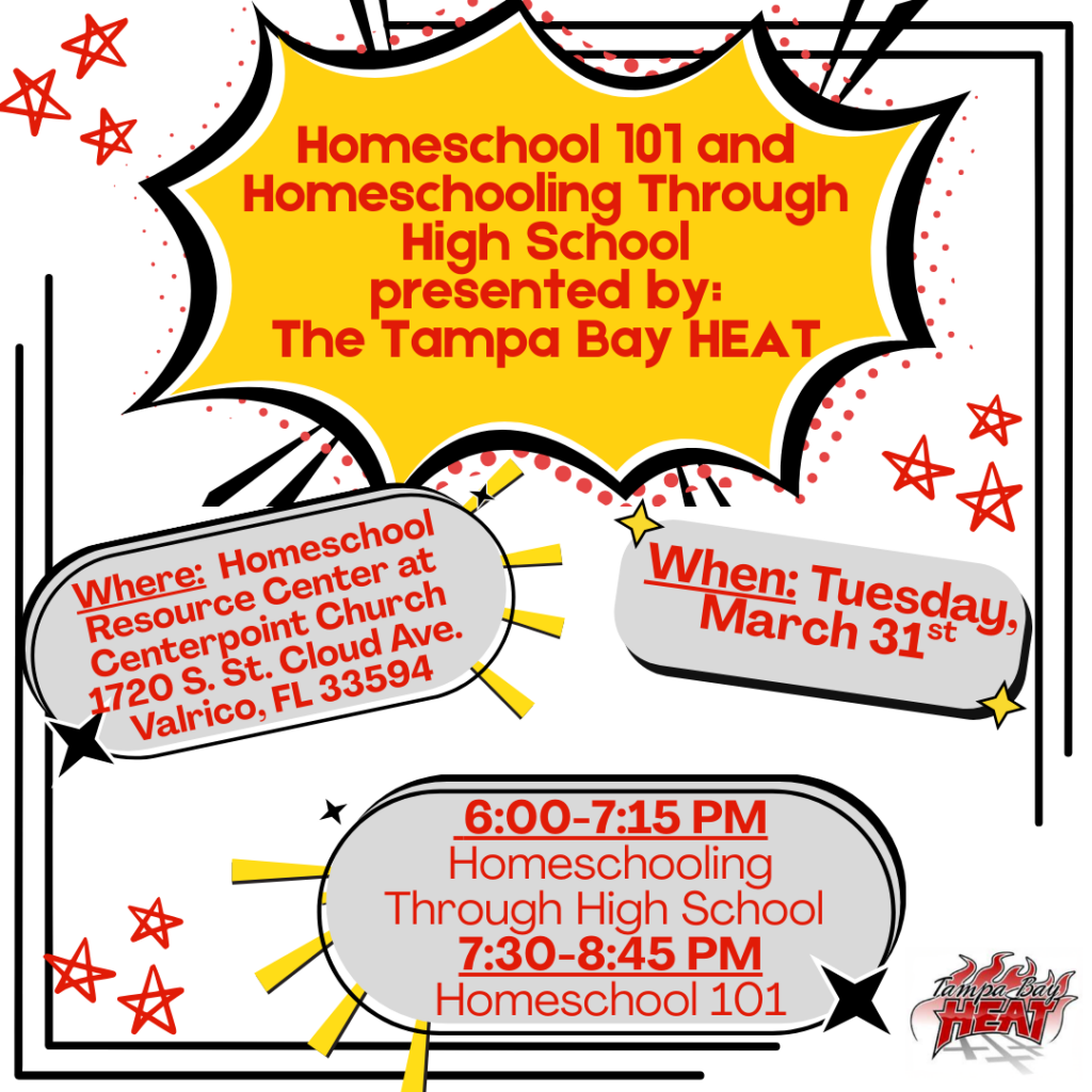 Come explore the Tampa Bay HEAT Homeschool Resource Center, get your questions answered, and experience the heart of our community all in one place. Whether you’re brand new or already connected, there’s something for everyone!